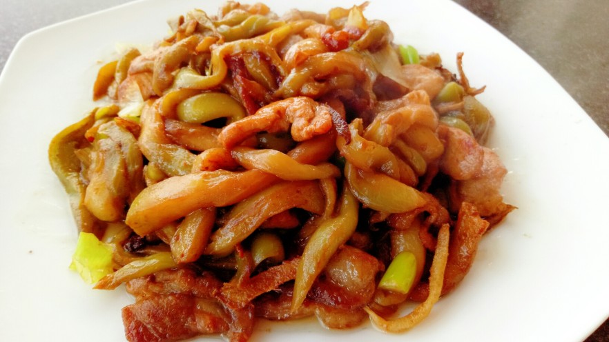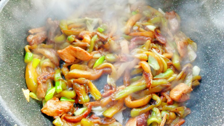 10. 肉炒熟后倒入干黄酱翻炒十几秒钟