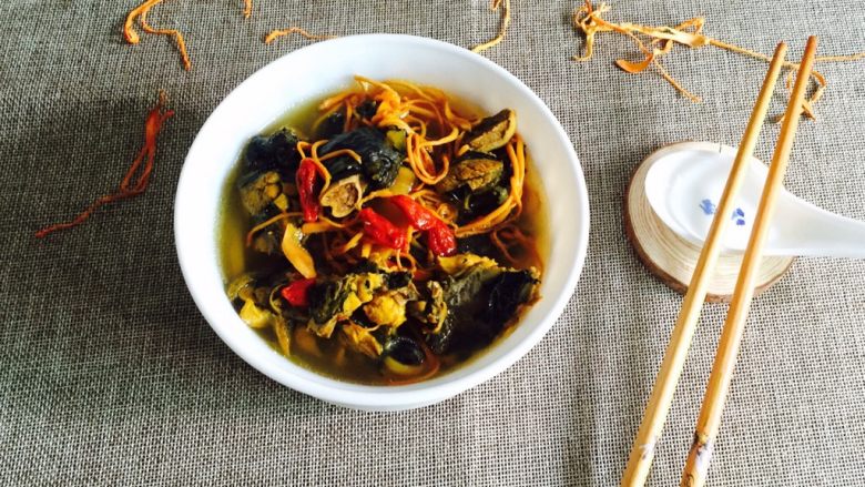 虫草花乌鸡汤,性质平和、味甘。不寒不燥,含有丰富的蛋白质,对增强和调节人体免疫力功能,提高人体抗病能力有一定的作用。有益肝肾、补精髓、止咳化痰的功效!