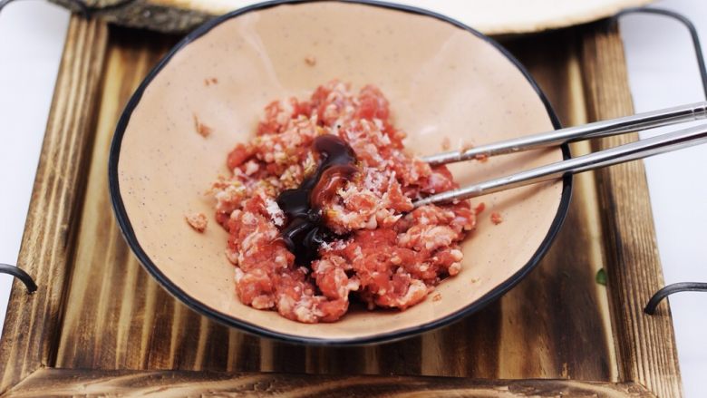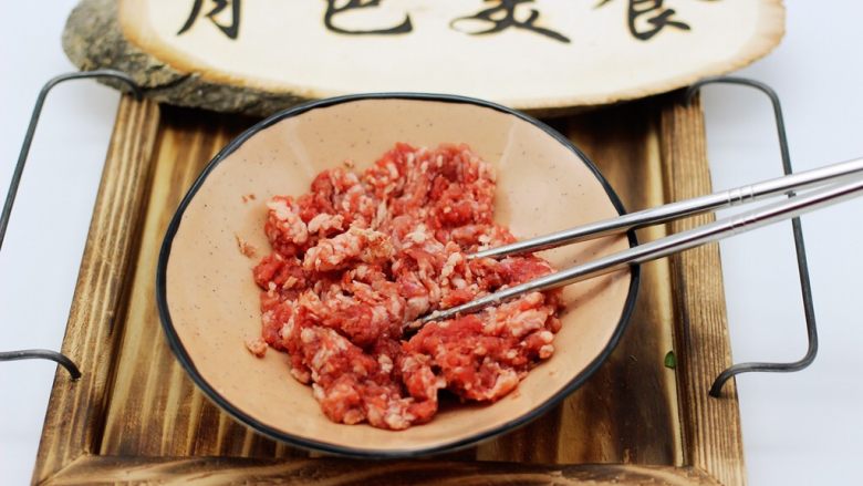 5. 取一个大碗、把剁好的肉泥放到碗里
