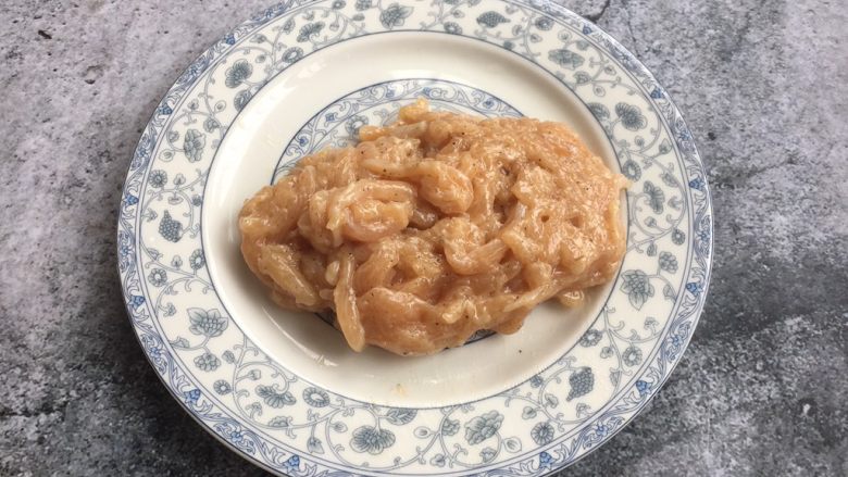7. 放入少许白胡椒粉,料酒,盐,淀粉,抓匀,腌制15分钟。