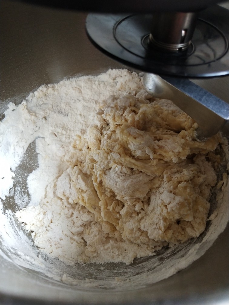4. 厨师机一档将面团揉到无干粉