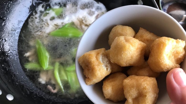 18. 3.4分钟之后打开锅盖,油豆腐已经瘪了,说明差不多好了