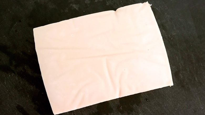2. 把千页豆腐切成1㎝后,3㎝宽,4㎝长的小块