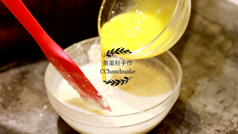 3. 事先准备一只大碗,放入冰箱冷藏半小时。这样比较容易刮浆。在碗里放入鸡蛋和凉水,搅拌均匀。再放入低粉,大致搅拌一下,即留点未完全拌匀的低粉在里面,这是面衣。