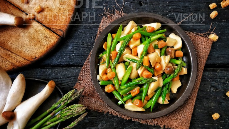 菌类料理+鲜掉眉毛的炒三鲜(芦笋杏鲍菇干贝)