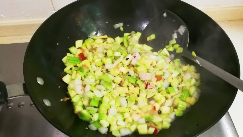 12. 翻炒至水分完全吸干,米的焦香味出来