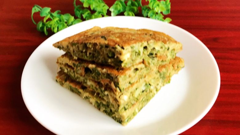 18. 香椿鸡蛋饼出锅了,切成小块放入盘中即可