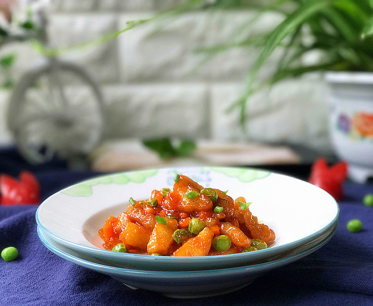 - 4、番茄沙司小火煸炒,可去除酱的异味,从而会使变得更纯更好吃