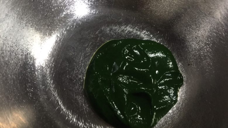 12. 取一部分蛋白霜(大概三分之一)加入菠菜糊