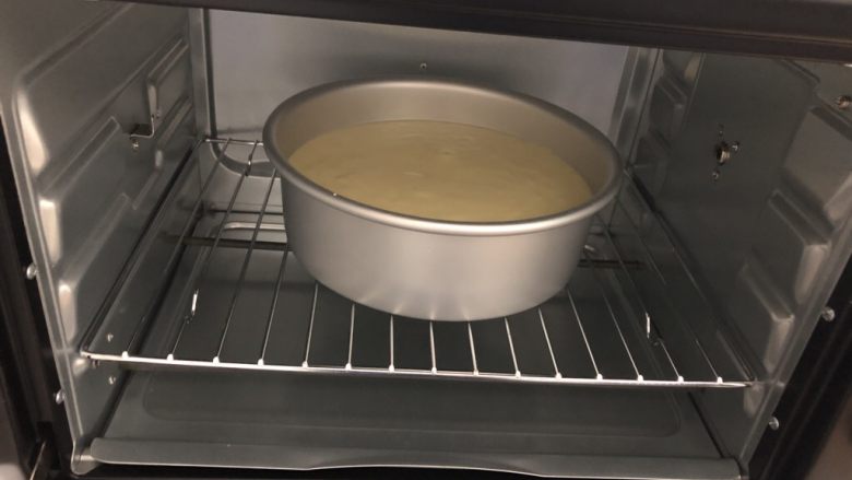 20. 放入预热好的烤箱,上火130°,下火140°烤50分钟(我是用上下火140°烤的,后面发现蛋糕表面开裂了,估计是温度太高了)