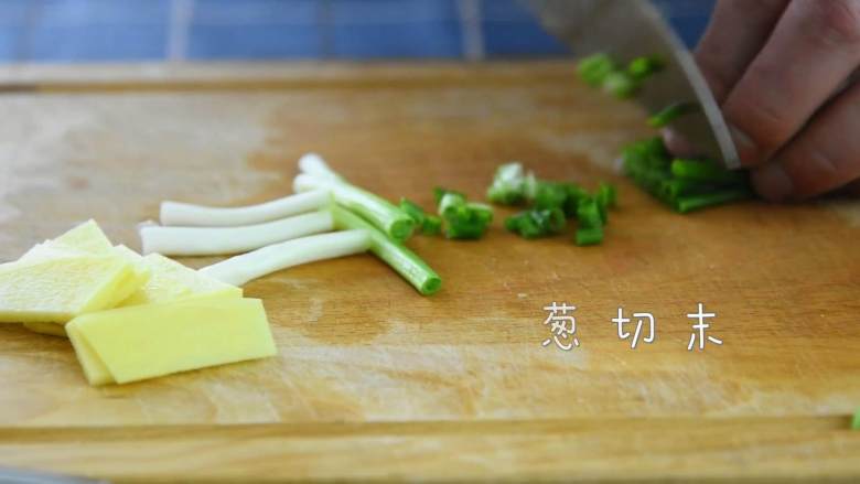 4. 姜切片、葱白切段、葱切末、小米椒切碎备用。