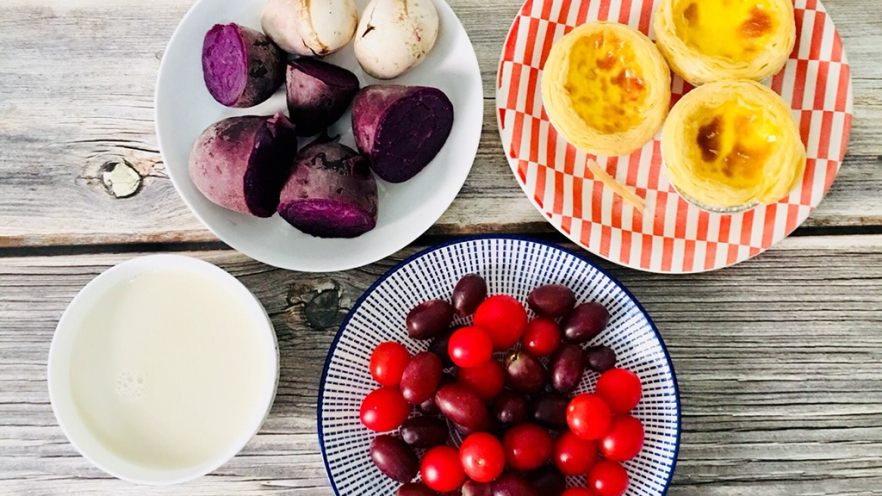 #熹宝的早餐日记# 2018年4月20日,晴。 早安,朋友。 紫薯+卤鸡蛋+蛋挞+小番茄+葡萄+花生浆 没有什么是一个卤鸡蛋解决不了的😛