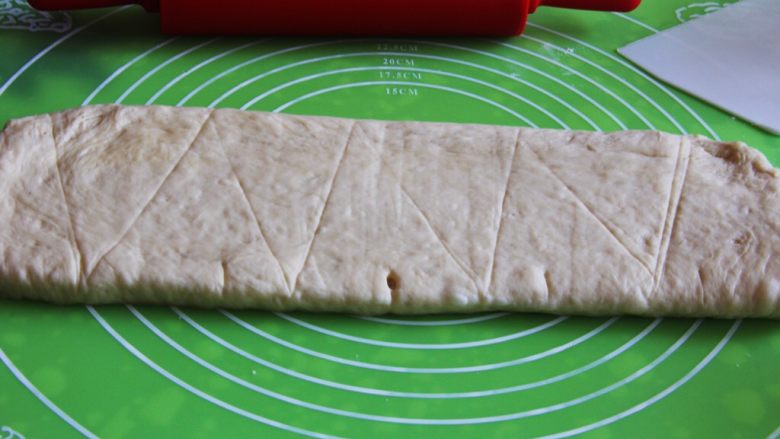 22. 30分钟后拿出,再次擀成长方形,九等分切开。