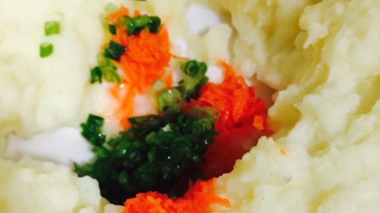 - 土豆泥有料理机打碎是最好的,没有就只能用擀面杖捣了,要完全捣成土豆泥哦,要不然,容易堵塞裱花嘴。我试了好几次也不怎么成型呢。
