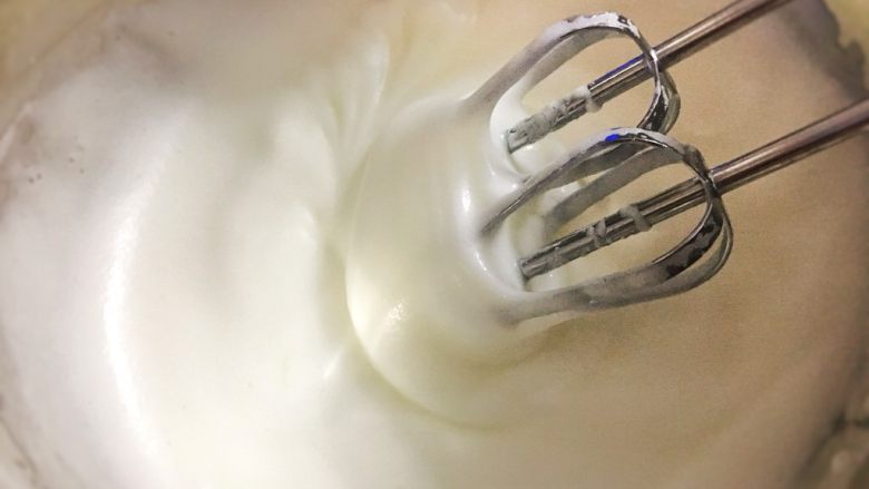 12. 如图,蛋白变得绵密了,加入最后的白砂糖,中高速快打。