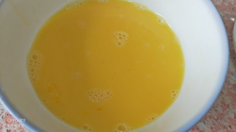 9. 待面糊表面凝固后倒适量蛋液用刷子均匀的刷上蛋液