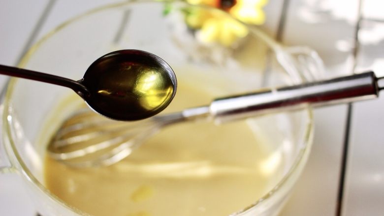 10. 直至提起手动打蛋器、面糊呈流动状态、且无干粉、细腻饱满、这样就可以了、把面糊静止10分钟