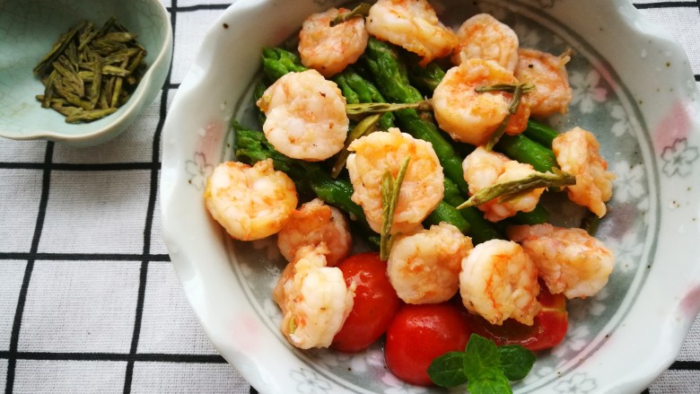 18. 茶香袭人,虾仁、蟹味菇清甜,芦笋脆甜,色香味俱全,还能瘦身呢