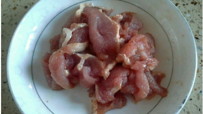 2. 里脊肉切片划十字花刀加料酒、生粉、生抽抓匀腌制10分钟