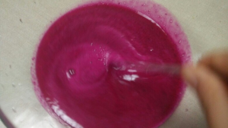 10. 吉利丁片化开后加入火龙果中搅拌均匀