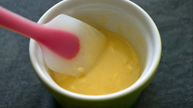 6. 炼乳加20克黄油放在碗内,隔热水融化,大概半分钟到一分钟左右,用刮刀搅拌均匀。
