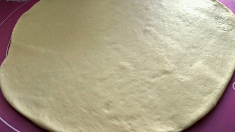 5. 取出面团,排气揉匀后擀成约五六毫米的厚片。
