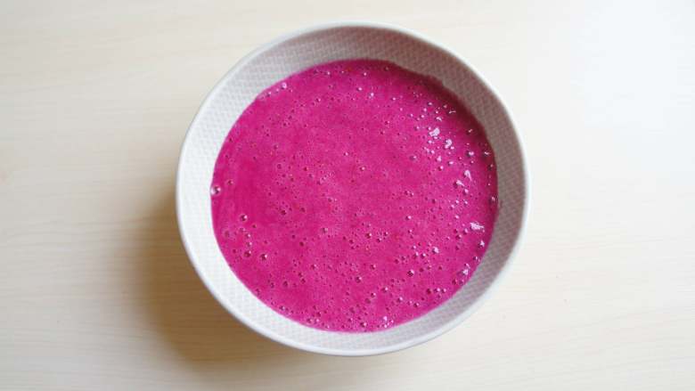 5. 将打好的果泥倒入事先准备好的碗里。最好找个用漂亮的碗来装,会提升颜值哦!
