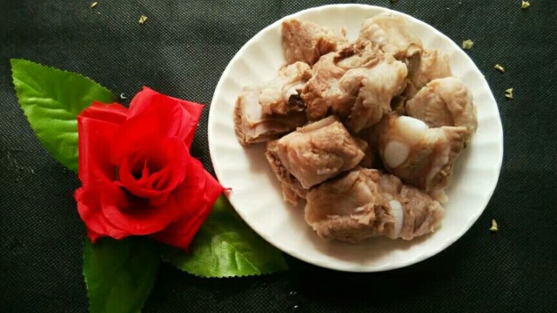1. 排骨洗净,买的时候让卖家剁成块了。