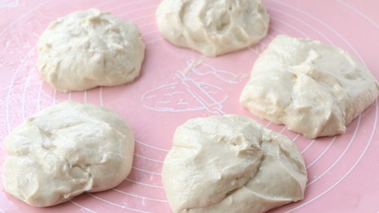6. 砧板上刷一层色拉油,面团放砧板上稍稍揉均匀,