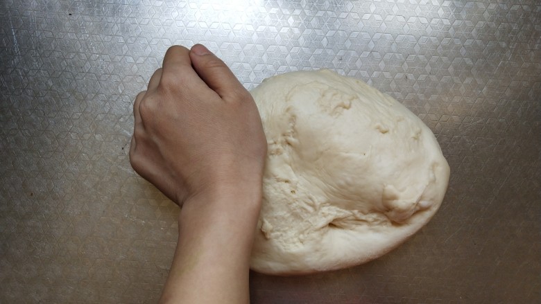 8. 将面团揉光滑放入盆中进行第一次发酵
