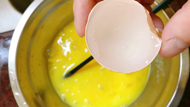 4. 把蛋壳洗一下,用来装水,加入5个鸡蛋壳的水量。