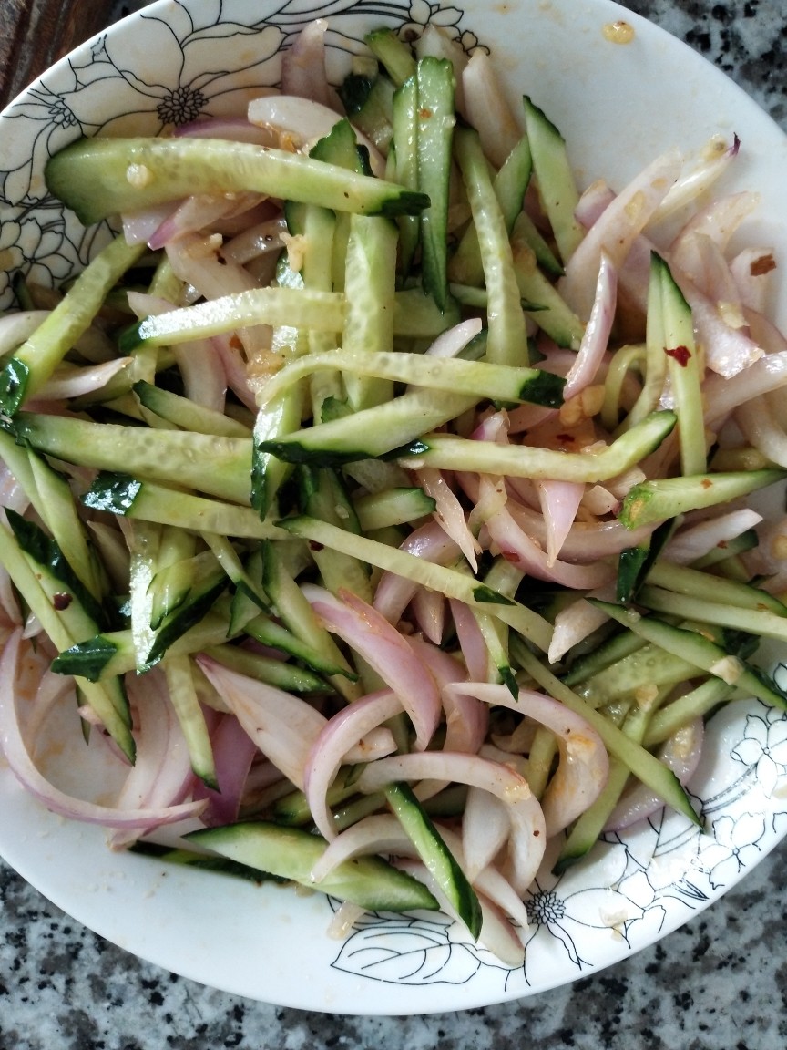 6. 倒在黄瓜,洋葱上,搅拌均匀就OK了