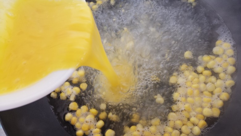 13. 不停的搅拌鸡蛋液,然后加调好的水淀粉