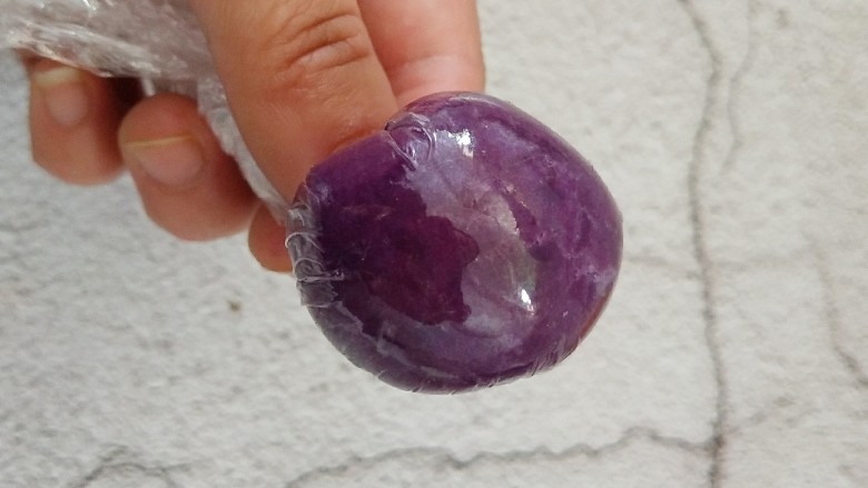 7. 把紫薯泥放入保鲜袋上压平。
