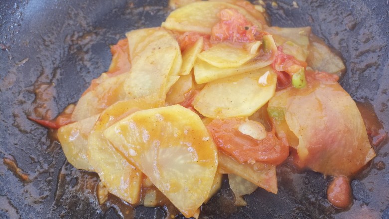 - 炒的时候加水是因为土豆不易熟,需要多炒一会,加水防止太干粘锅