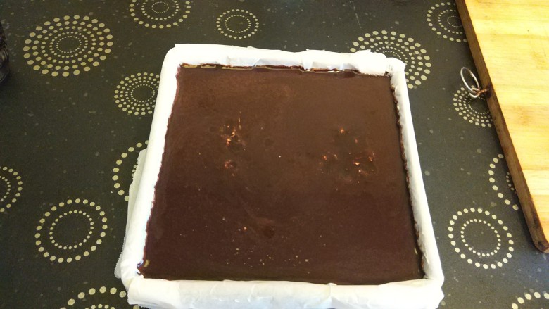 3. 将奶糊倒入活模中,冷冻20分钟,再将可可糊淋在表面。