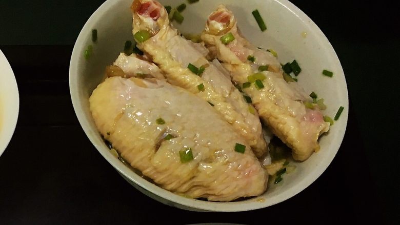 7. 鸡翅上面滴几滴玉米油。