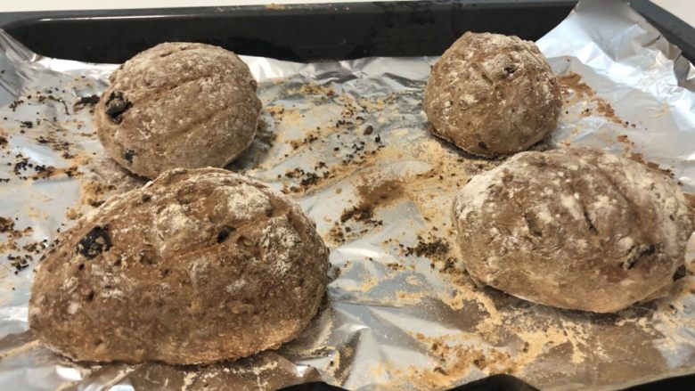 6. 烤箱220度预热,预热好后放入烤盘烤25分钟。(如果面团分得比较小的话烤20至30分钟,比较大的话烤30至35分钟。)
