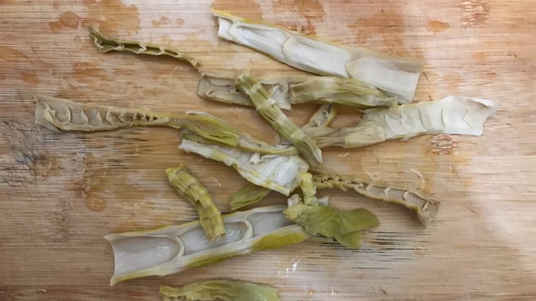 7. 洗干净后的笋干用手撕开一条条,越细越好 我试过了,刀切,剪刀剪,都没有手撕来的快来的细