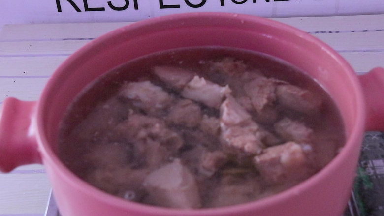 13. 水开后转小火盖盖炖煮一个小时左右...