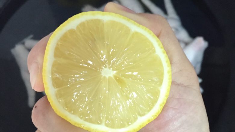 3. 放入冷水锅,挤半个柠檬汁进去,加两片姜,再倒一盖料酒,加盐进去煮,会更入味