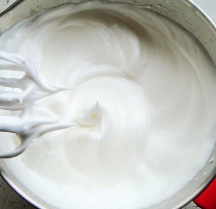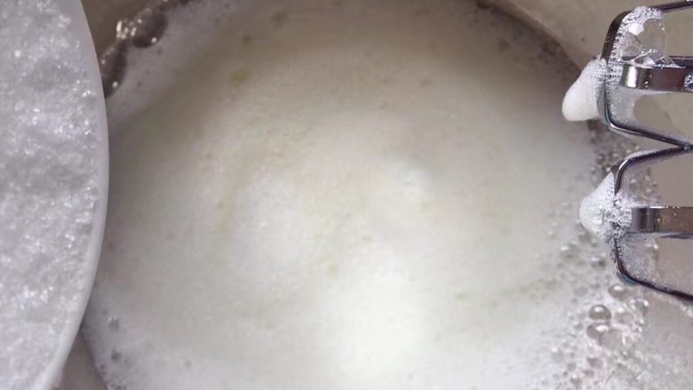 10. 在蛋白中加入几滴白醋,绵白糖分次加入蛋白打发