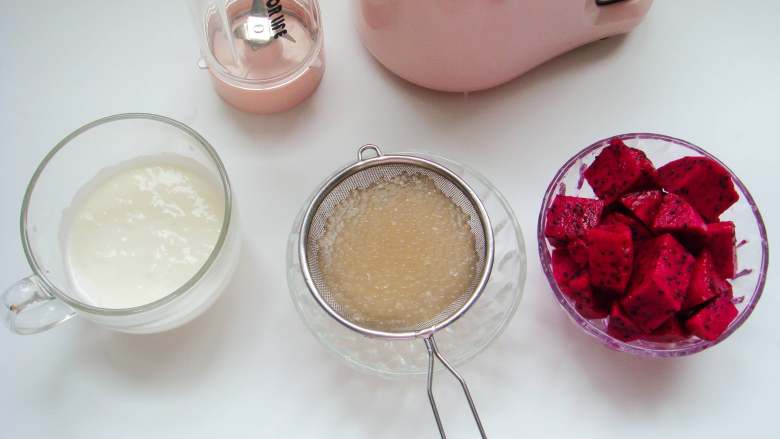 4. 火龙果放入料理杯中加入酸奶。