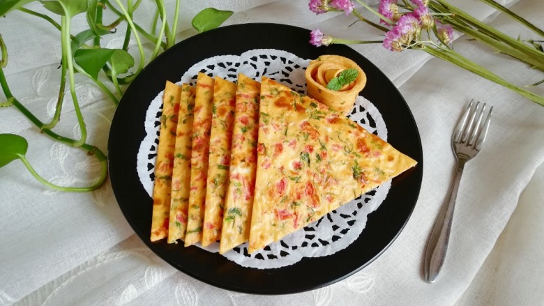 番茄和鸡蛋就是绝配,怎么做都好吃。早餐做的番茄鸡蛋饼,特别受欢迎,简单快手又吃,一家人都喜欢。