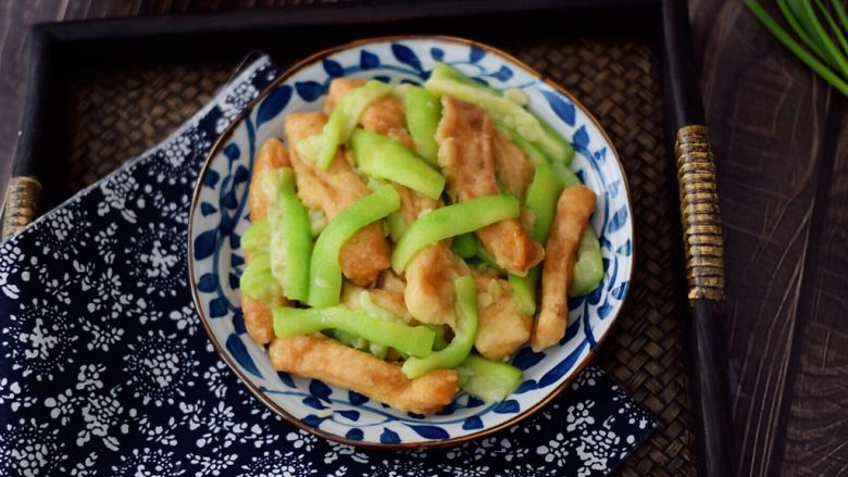 8. 放入丝瓜翻炒均匀