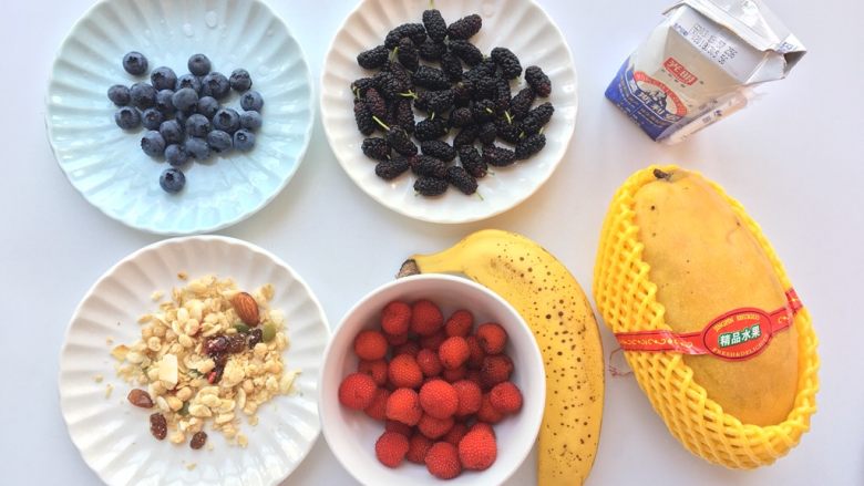 1. 所有材料准备好,水果洗净备用,芒果最后没用