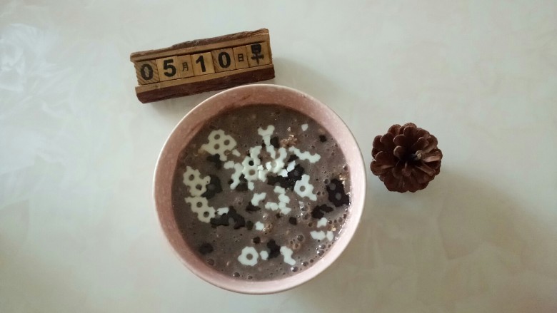 8. 待发出“滴滴滴”的声音,将红豆糙米荞麦米糊倒入碗里,搅拌均匀。
