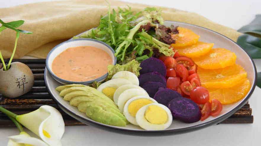 想要拥有好身材又充满健康活力的你,何不用沙拉,来代替一些菜品,通过选用不同的蔬菜水果做成沙拉,可以补充各种营养哦~