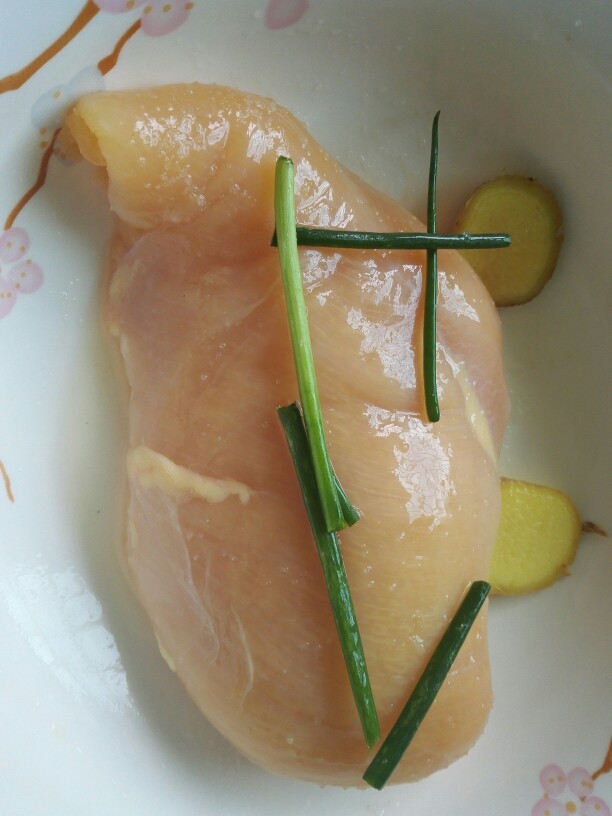 4. 将鸡胸肉放入锅里蒸熟,放入小半锅水即可