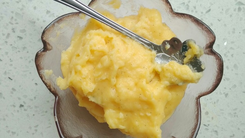 在西式甜品里面,基础的调味酱就是奶馅与糖霜,可分为欧系的卡士达酱和美式的甜奶油霜。如果说酱油是粤菜的灵魂所在,那么卡士达酱可说是西点里面的“酱油”。这次学习了煮制的卡士达酱,加入了香草荚,用来和打发的淡奶油混合进行盒子蛋糕的填充。